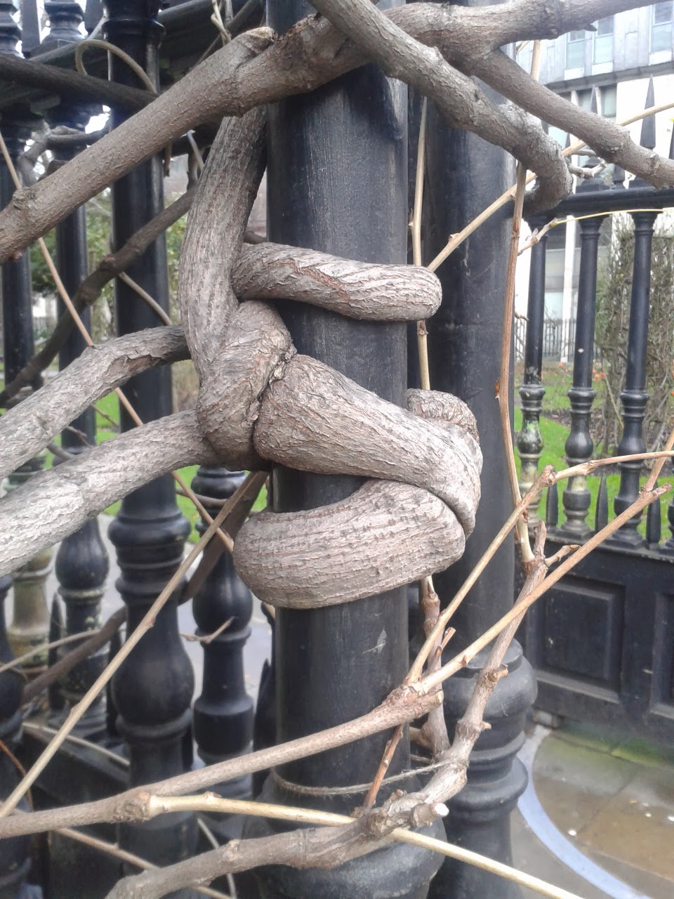 "What are you doing here?" I asked, in a manner that was necessarily discreet. I did not want to appear to be talking to the iron railings and its tenacious organic guest. I was aware of the possibility I was on CCTV and that to fully express my hurt there and then, at an imaginary friend who had abandoned me, would risk attracting some unwelcome attention. I thought he had left me, in disgust at my wallowing in a slough of despond brought on by yet another poor housing situation; that he could not live or emanate in such wallowsome conditions. It transpired my suspicions may have been a slight upon the field student's character.